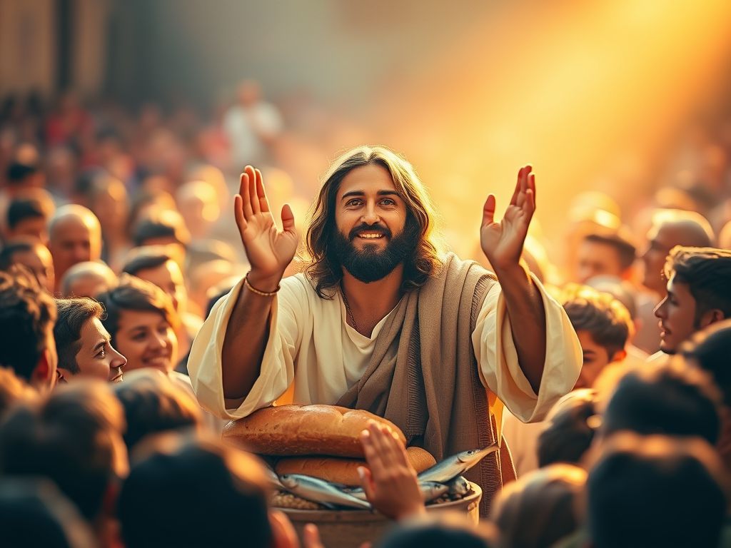 Just as Jesus is the transition from earth to heaven for our spirits, He is also the transition for us from heaven to earth for our inheritance. So whatever the loaves and fishes or the starving crowd may represent, what do we have available to meet the need? Jesus can make our lack into His abundance if we remember to thank Him for our inheritance. Pass the salt, please, Lord. Thank You.